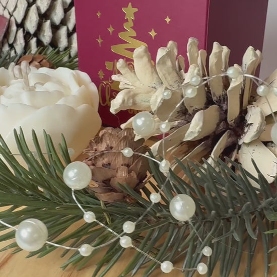 Handmade Peony Flower Soy Wax Candle with Christmas Box